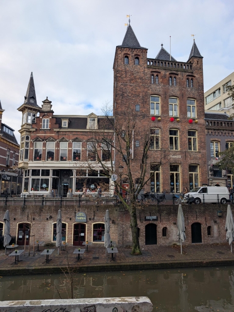 De Utrechtse Oude Gracht is een middeleeuws havencomplex van werven en werfkelders die onder de straat in verbinding staan met de opslagkelders onder de stenen grachtenpanden. Een ander verhaal over de werven. Alle handelswaar moest eerst de oever worden opgesleept om weer via een trap naar beneden te worden gebracht. Erg onhandig allemaal. Aan de einde van de twaalfde eeuw werd er een tunnel onder de straat aangelegd. En via deze tunnel werd de waar vanaf de werf en de kade naar de huiskelders gebracht. Er werden snel vele tunnels aangelegd. Ook de 40 verschillende geplante bomen langs de kades waren fantastisch van kleur in deze periode. Onze kapitein Bastiaan beweerde dat het in de lente nog mooier was maar dat moest hij zeggen van zijn baas!